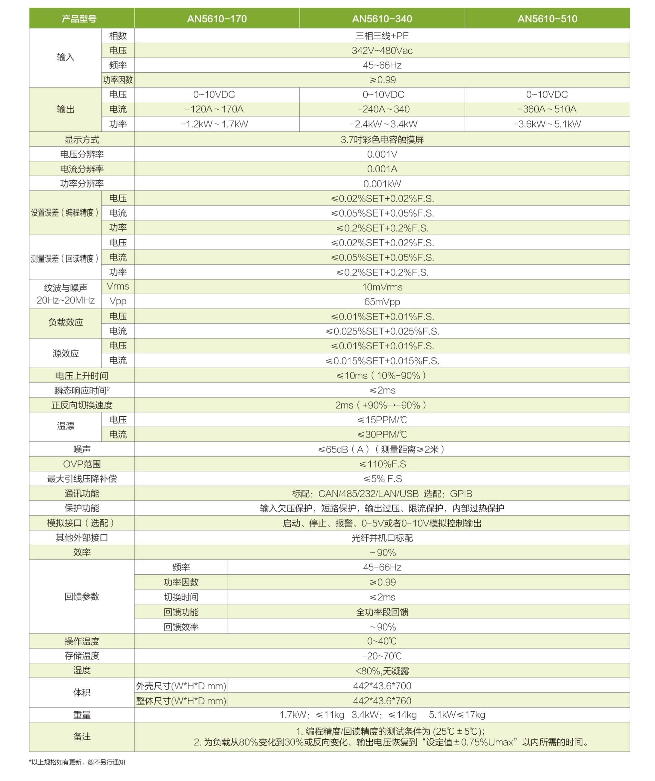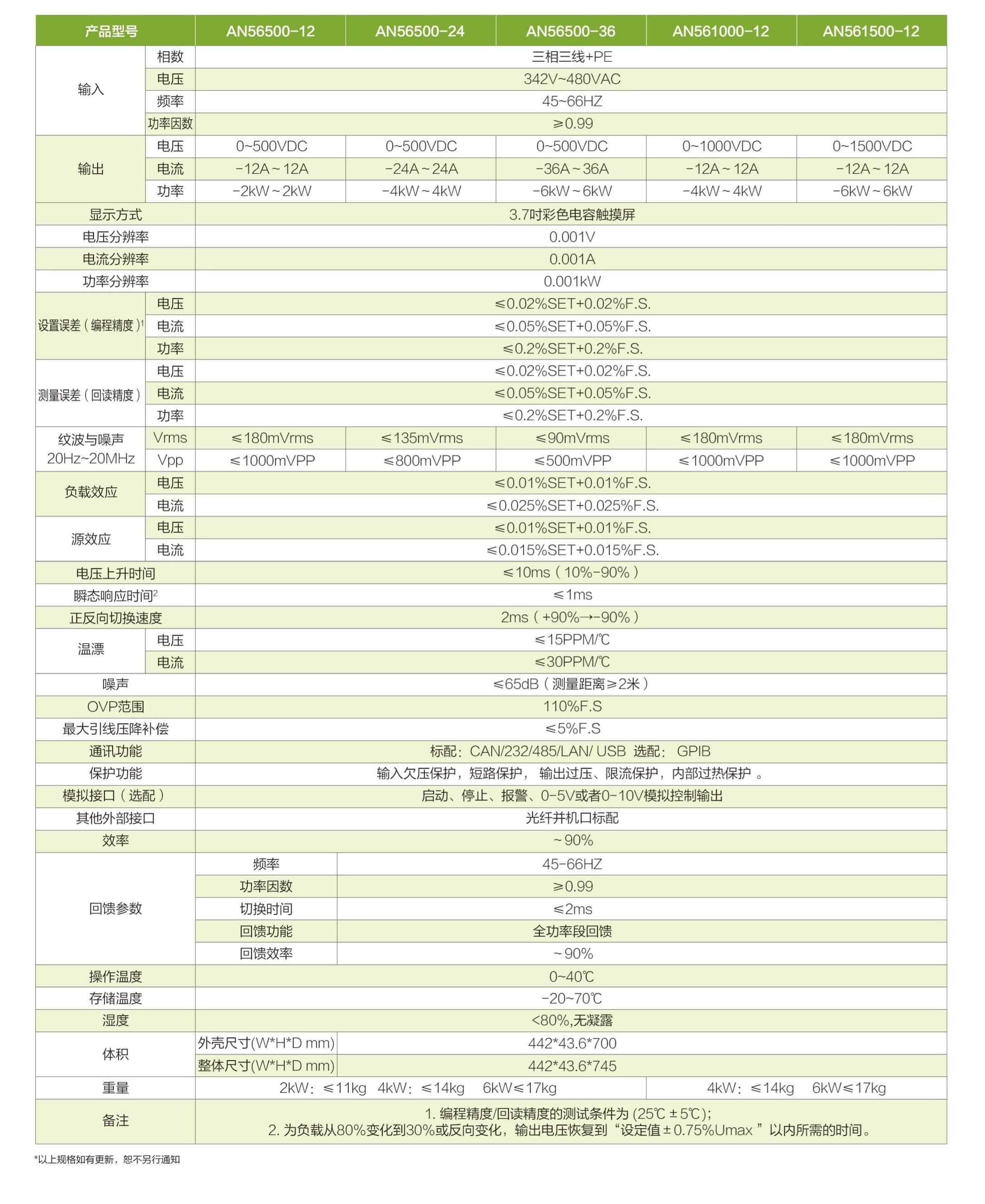 AN56系列是一款集直流电源和回馈式负载于一体的可编程直流电源,既可以做源,实现source功能,对外输出动率,也可以做载,实现sink功能,吸收功率并清洁的返回电网,实现标准的双象限运行。
