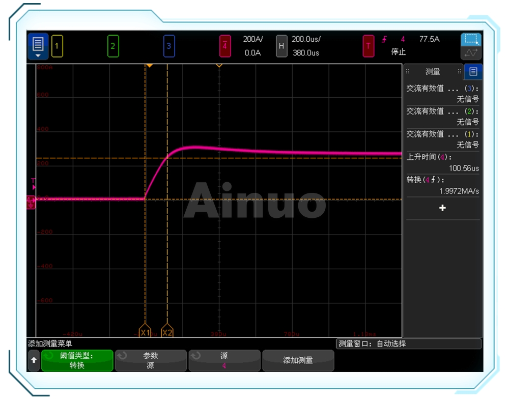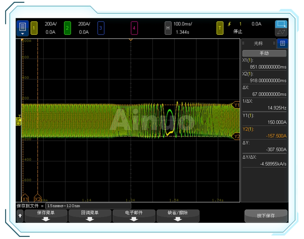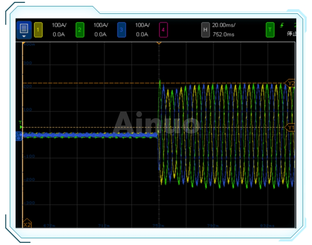 模拟堵转模式下输出直流,电流上升率可达2000A/ms。给定扭矩下,15000rpm/s从+5000rpm到-5000rpm平稳切换。