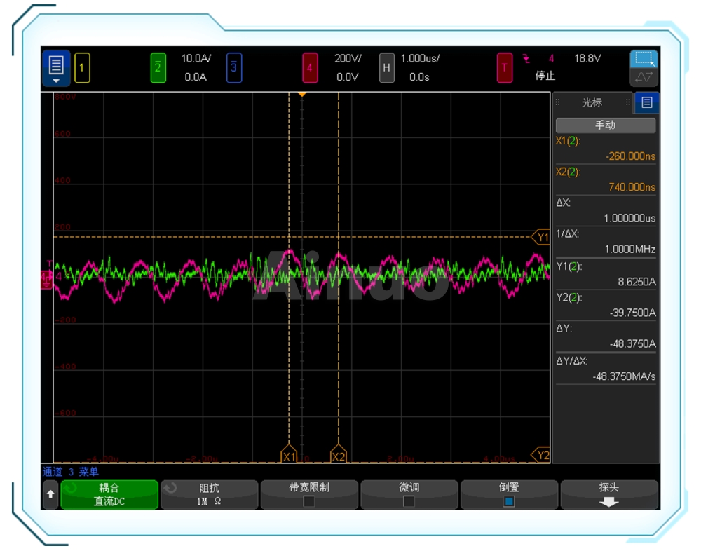 电机模拟器输出开关频率1MHZ,能快速跟随电机控制器输出动态响应变化。
